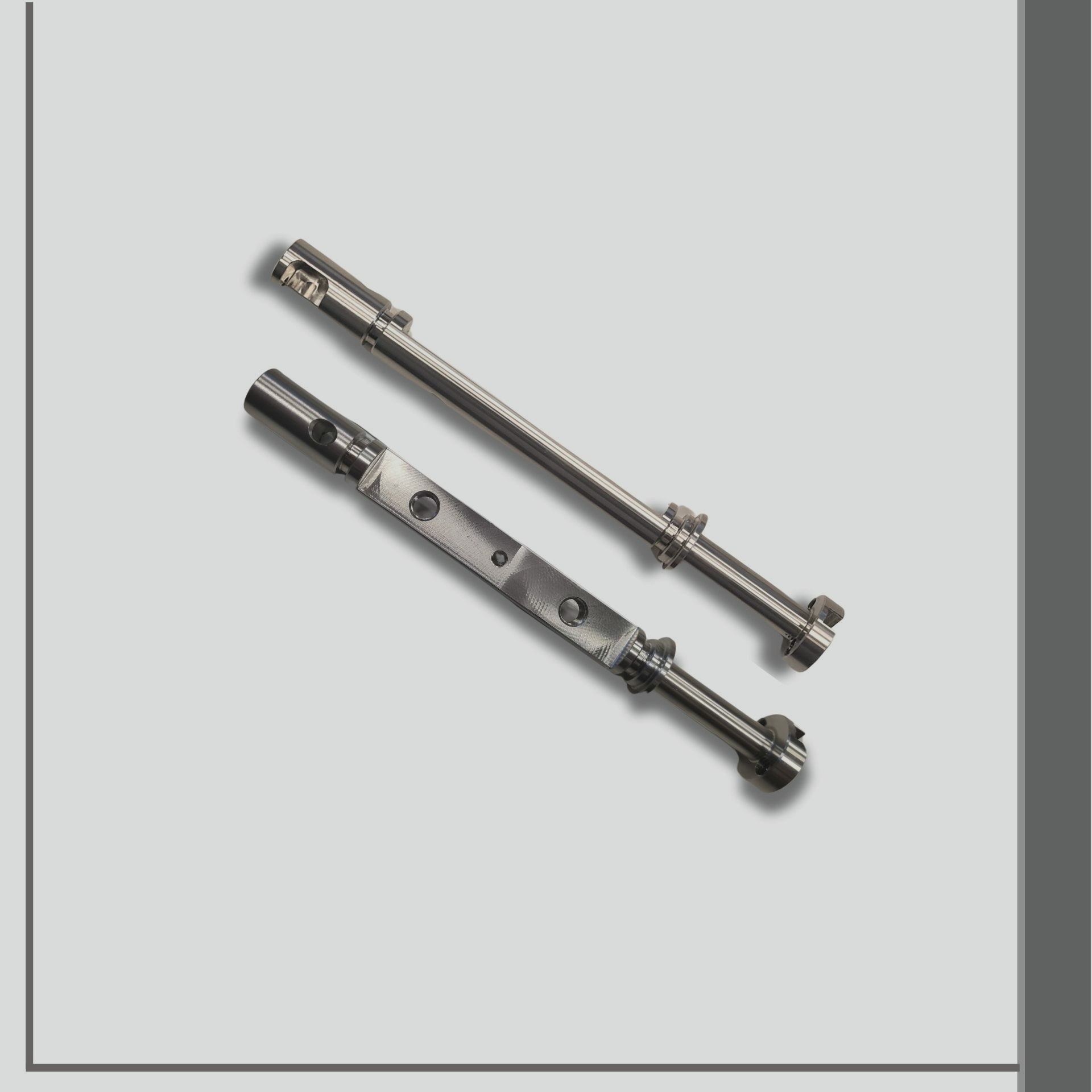 Articolo realizzato in acciaio INOX AISI 316 con 28 utensili in lavorazione simultanea sullo stesso ciclo di lavoro su tornio da barra a 2 torrette e 12 assi controllati (tra cui X, Z, Y, B)